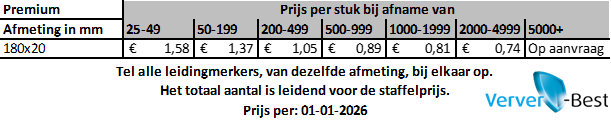 Heeft u een aanvraag voor leidingmerkers in een ander formaat of aantal? Vraag dan een op maat gemaakte offerte bij ons aan via webshop@ververbest.nl.